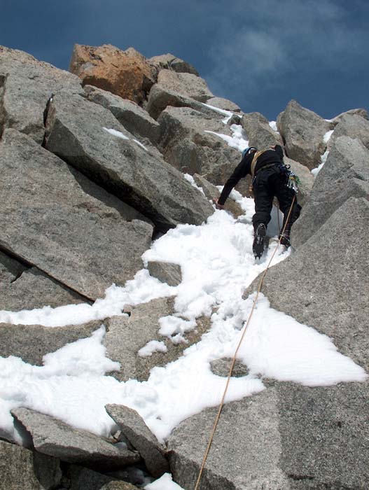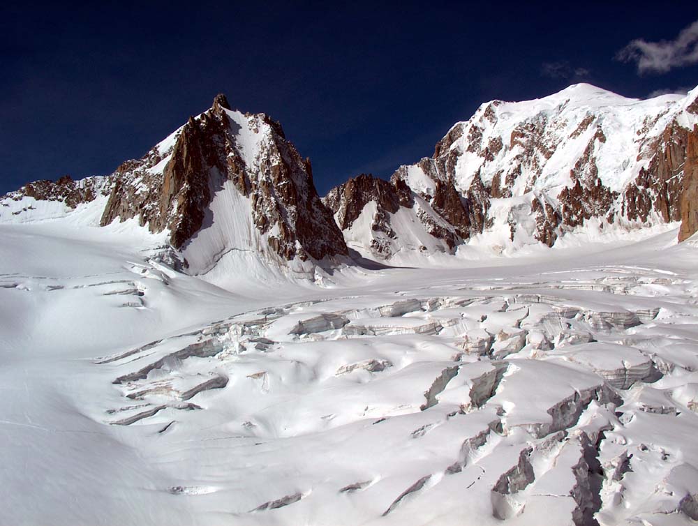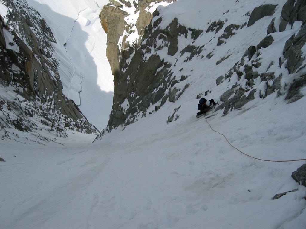 EsipuheViime vuonna kirjoitin matkakertomuksen kiipeilyn keltanokkien matkasta Chamonixiin ja Mont Blancille. Saamani palautteen vuoksi palaan kirjoituspöydän ääreen. En ole toistanut edellisen tarinan faktoja, tämä dokumentti on siis pikemminkin yhden teoksen jälkimmäinen osa, ei niinkään jatkotarina :) Tämän vuoden reissuun lähtiessä tilanne oli täysin toinen, kiipeilykokemus oli kaksinkertaistettu huikeaan kahteen vuoteen. Samalla oli hankittu yhtä sun toista kamaa sekä opeteltu käyttämään niitä. Liidauskokemus oli epäilemättä moninkertaistunut ja sitä oli kerran kokeiltu myös jäällä. Tavoitteena oli kiivetä AD-tasoisia vuoristoreittejä sekä kallioreittien osalta pidentää reitin pituutta ja nostaa reitin vaikeutta. Lisäksi trädikamoillekin olisi kiva saada jotain käyttöä. Näillä tavoitteilla alkoikin armoton suunnittelu. Suunnitelluista vuorista ja reiteistä osa tippuikin sitten pitkin kevättä ja reissua pois. Viimeiset ylimääräiset tippuivat vasta perillä, kun tajusimme suunnitelmamme aivan liian suuriksi. Jotain tuli lisääkin, sillä meillä ei ollut Aiguilles Rougesin puolesta topoa ennen lähtöä. Se hankittiinkin sitten heti ensimmäisenä päivänä. Seuraava teksti on kirjoitettu ajatuksella, että siitä voisi olla hyötyä jollekin samassa vaiheessa harrastustaan olevalle oman matkan suunnittelun pohjaksi. Aikaa reissun toteuttamiseen kului kaksi viikkoa ja kotiin palattiin juhannuspäivänä. Säät olivat tälläkin kertaa melkoisen suosiolliset, paljon kerettiin tekemään. Paikan päälle ei ollut tarkoitus mennä erityisesti tuhlaamaan eikä säästämään. Hulluilta päiviltä lennot Zurichiin, 185 euroa per pää, oli tämän vuoden lentovalinta. Zurichistä jatkettiin vuokra-autolla, noin 250 euroa per pää polttoaineineen. Majoitukseksi oli valittu koppi Chamonix Sudista. Plussaa hinta, parkkipaikkojen riittävyys ja läheisyys Midin kabiinilta. Hintaa tuli noin 190 euroa per pää petivaatteineen. Lisäksi kahden viikon aikana saatiin menemään noin 200 euroa hissilippuihin sekä 80 euroa torino-majalla olosta. Nousuille tulee siis jonkin verran hintaa. Lisäksi ruokaan, pikku kamoihin ja olueen saatiin sijoitettua muutama irtosatanen, ravintolassakin siis syötiin ja kokonaislaskuksi tulikin noin sata euroa jokaista täyttä matka/kiipeilypäivää, joita siis oli 14, kohden. CheserysCheserys osui matkallamme ohjelmaan toisena päivänä ensimmäisen päivän ihmettelyjen ja kauppojen kiertelyn jälkeen. Siellä on useita hyvin pultattuja monen kp:n reittejä, joista helpommat soveltuivat hyvin kiipeilyn tokaluokkalaisten multipitch taitojen kertaamiseen ja kiipeilyn aloittamiseen. Reiteiksi valikoituivat ensin Voie Rouge ja sitten Voie Jaune. Molemmat ovat helppoja vaikeuden ollessa enimmillään 4c:tä. Kummallakaan reitillä ei tarvitse mukaan mitään muuta kamaa kuin jatkoja. Tosin joidenkin ankkureiden jälkeen ensimmäiselle pultille saattaa olla hivenen matkaa, joten parista kiilasta ei olisi varmaankaan haittaa. Toisaalta, nämä pidemmät välit ovat vastaavasti tosi helppoja. Tuskin niiltä tipahtaa. Mutta silti, varmistajan ohitse tipahtaminen ei kuulosta erityisen houkuttelevalta. Cheseryyn jäi noustavaksi vielä pari mielenkiintoista reittiä, vaikeudeltaan enimmillään 5b/5c. Paikalle nousevaan polkuun jouduttaneen tutustumaan vastaisuudessakin. Lähestyminen on melkein sama kuin viereiselle Aiguillettelle. Tour Ronde - Gervasutti CouloirAlunperin suunnittelimme pohjoisseinän kiipeämistä. Talven mittaan eri lähteistä saatujen mielipiteiden perusteella päätimme vaihtaa reitin kuruksi, jonka pitäisi olla hivenen helpompi, ei niin kriittinen aikataululle ja silti kuitenkin hieno reitti kiivettäväksi. Vaihto kannatti, sillä edellisen lumisateen jälkeen pohjoisseinä ei vyörynyt, vaan pintaan jäi 20-30cm lunta. Varmistaminen olisi ollut vaikeampaa kuin vyöryneessä kurussa, sillä vyöryjäljen alta paljastui ensimmäisen kolmanneksen matkalle. Reitin kiipeäminen alkoi luonnollisesti Chamonixista Helbronnerille siirtymisellä. Illaksi oli tarkoitus mennä Torinolle yöksi, josta oli myös majoitus varattuna. Maja oli lähes tyhjillään, mutta itsestään ilmoittaminen on kohteliasta. Helbronnerille siirtymisen jälkeen lähdettiin tarkastamaan reittiä. Tärkeintä oli saada varmuus siitä, että kuru on vyörynyt, koska edellinen sade oli ollut vain paria päivää aikaisemmin ja lunta oli tullut ihan hyvin. Kukaan ei ollut kiivennyt sitä sateen jälkeen. Samalla saatiin vähän aikatietoa siitä, että miten pitkään kurun alkuun pääseminen kestää. Päivällä jäätikölläkin on helvetillisen kuuma, joten matka etenee hitaasti. Koska kuru oli vyörynyt, niin palasimme turvallisin mielin Torinolle ja varasimme aamupalan viideksi. Jos vointi on herätessä ok, niin lähdemme matkaan. Jos yläilma tuntuu jäsenissä, niin sitten akklimatisoidutaan päivän verran. Koska akklimatisoitumiseen ei oltu erityisemmin satsattu, niin ylimääräinen päivä ei olisi ollut takaisku kuin korkeintaan lompakolle. Ei tuntunut, joten viideltä ylös, syömään ja ulos. Koska oli melkein Juhannus, niin aurinko alkoi paistamaan melkein heti kävelyn aloitettuamme. Onneksi kuru on varjossa puoleen päivään saakka, jonka jälkeen se saa vähän aurinkoa. Kurun juurella pieni tauko, kamojen välppäystä ja eikun liikkeelle. Reunarailo ylittyi helposti vyöryjäljen kohdalta, jonka jälkeen siirryttiinkin etenemään running belaynä. Kurun alkupää varmistettiin jääruuvein, joita oli mukana kuusi. Laaksossa olisi ollut neljä lisää ja niiden ylös tuominen olisi todennäköisesti nopeuttanut kiipeämistä jonkin verran, sillä nyt ständejä tuli turhan usein. Alussa etenimme ehkä myös turhan lyhyellä köydellä. Hieman lisää liekaa väliin ja vauhtia tulikin vähän lisää. Ylempänä lumivyöry jälki alkoi kaventumaan ja samalla jää pehmenemään. Puolessa välissä reittiä