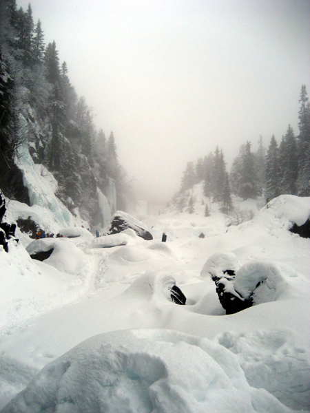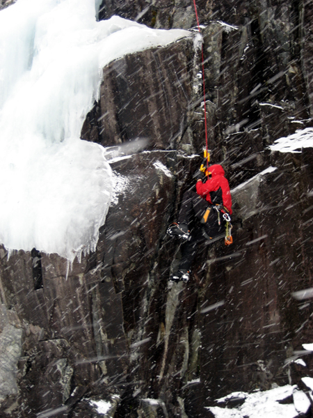 puista, mutta ei voi mitään. Viimeinen jääständi oli vielä tehtävä. Ylös päästyämme piti rämpiä vielä takaisin alas.
