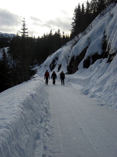erittäin hyvin Vemorkin jälkeen tien mutkasta. Hieman sitä katseltuamme päätimme lähteä reitille, koska se näyttää hyvältä.