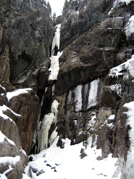 Topon mukaan neljä köydenpituutta ja vaikeutta WI4:n verran. Oli kuitenkin selvää, että nelosta olisi vain yhden kp:n